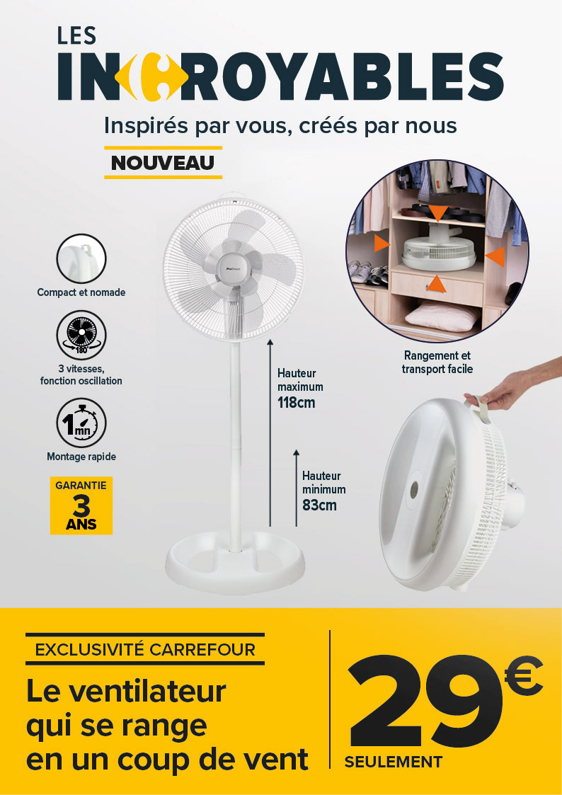 When summer is over and it's time to put away your fan, it's always tricky to find a place for it. At Carrefour, we have developed a simple yet smart way to easily transport and store your fan at home.